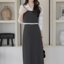 센리아든 배색 쉬폰 뷔스티에 뒷밴딩 투피스 세트