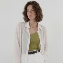 엘린느디 링클 쉬폰 셔링 스퀘어넥 반팔 블라우스